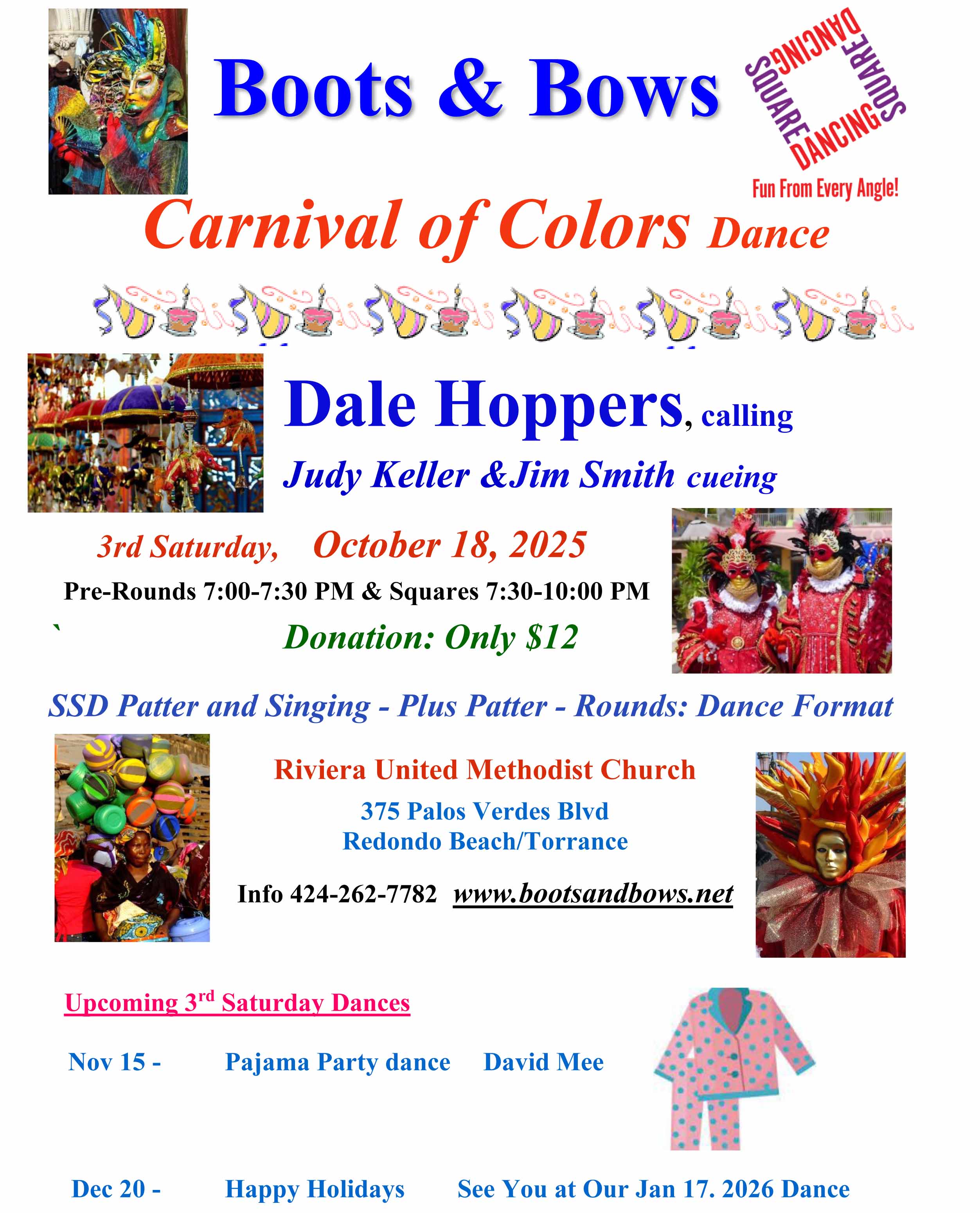 18 October 2025, Boots and Bows, Caller Dale Hoppers doing Squares and Judy Keller and Jim Smith cueing rounds - Carnival of Colors Dance